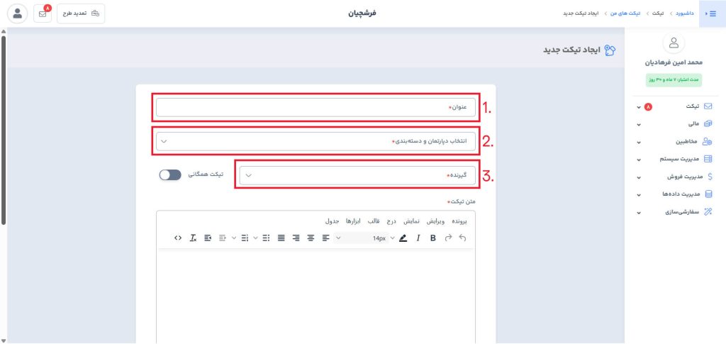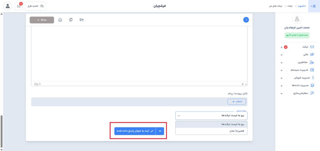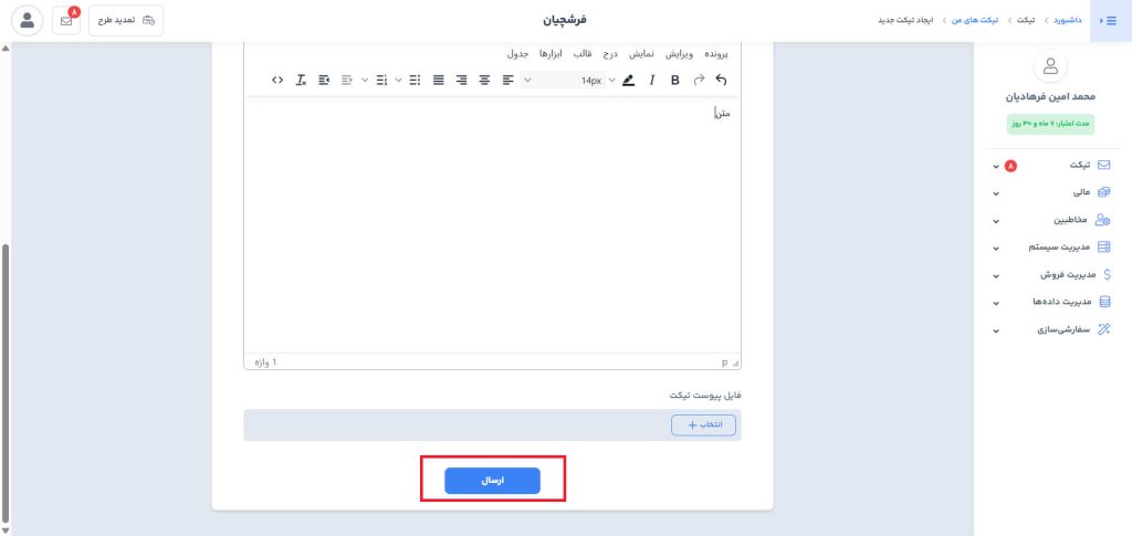 و با کلیک روی دکمه ارسال این تیکت برای کاربران شما قابل مشاهده خواهد بود.