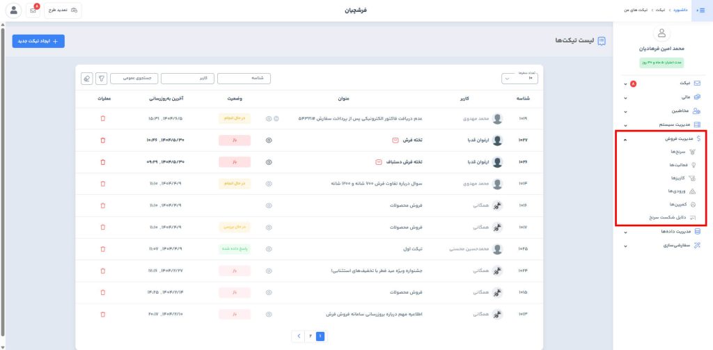 در پنل دستیارک و از طریق تب «مدیریت فروش» میتوانید به صفحه ورودیهای فروش دسترسی پیدا کنید.