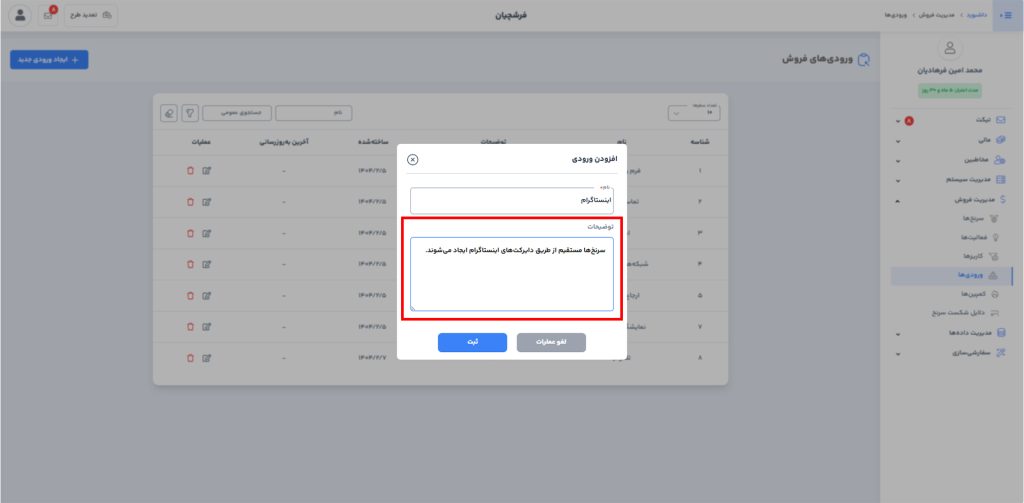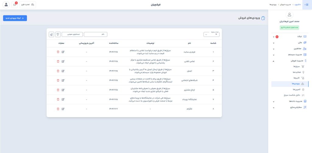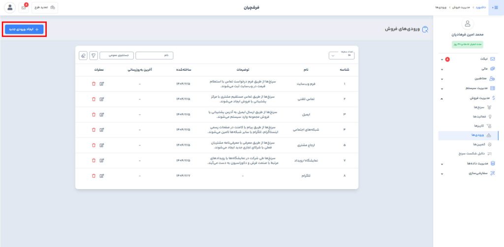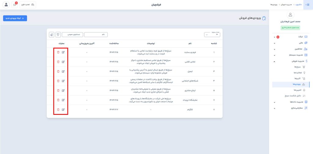 شما میتوانید این ورودیها را بهراحتی مدیریت، ویرایش یا حذف کنید و در صورت نیاز، تنظیمات مربوط به هر ورودی را برای بهبود فرآیند جذب سرنخها تغییر دهید.