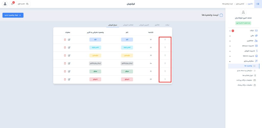 همچنین میتوانید ترتیب نمایش وضعیتها را در لیستهای مختلف تغییر دهید تا دسترسی و مدیریت آنها سادهتر و کارآمدتر باشد.