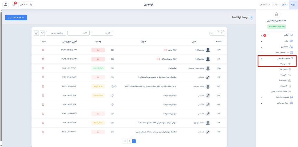 در پنل دستیارک و از بخش مدیریت فروش، میتوانید به صفحه سرنخهای فروش دسترسی پیدا کنید.