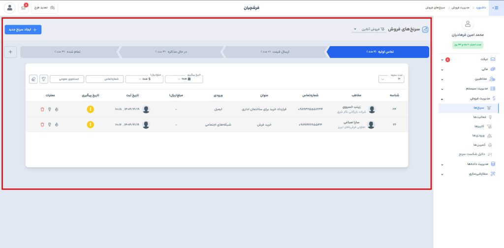 این امکانات به شما کمک میکنند تا پیگیری و مدیریت سرنخها بهصورت دقیق و سازمانیافته انجام شود و فرصتهای فروش بهینه شوند.