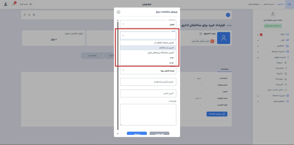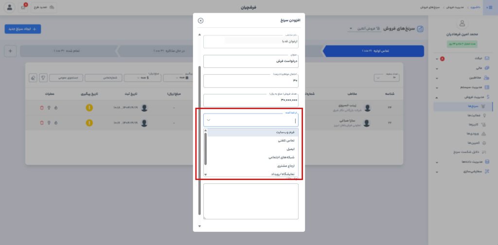 شما میتوانید مشخص کنید که سرنخ شما از چه ورودی فروشی وارد سیستم شده است.