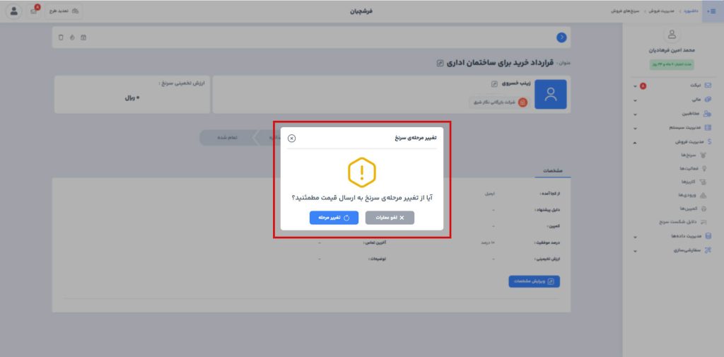 مقداردهی فیلد مرحله بهصورت خودکار بر اساس همان مرحلهای انجام میشود که در آن اقدام به ثبت سرنخ کردهاید.