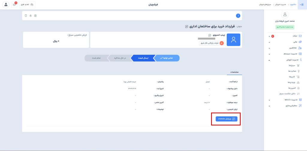مشخصات سرنخ را ویرایش کنید تا اطلاعات همیشه بهروز باشند.